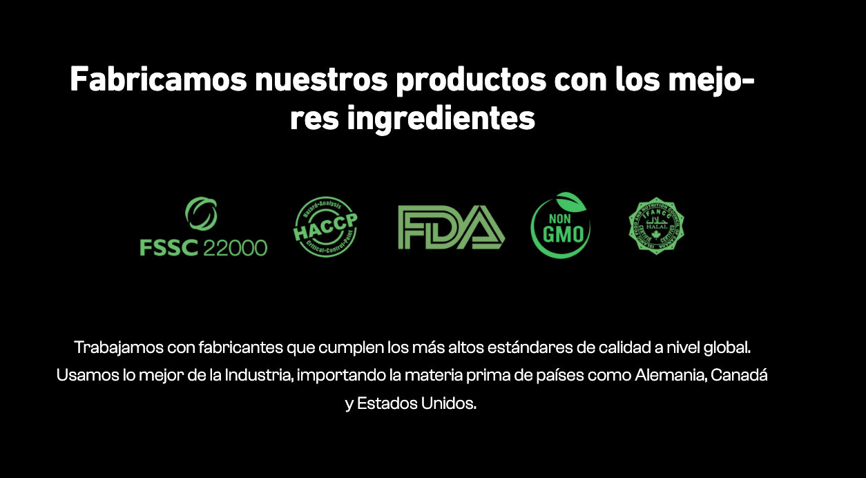 Usamos la proteína respectiva del producto (Whey, ISO o Arveja) como única fuente de proteína. Sin proteína de Soya ni aminoácidos relleno para abaratar la fórmula.
