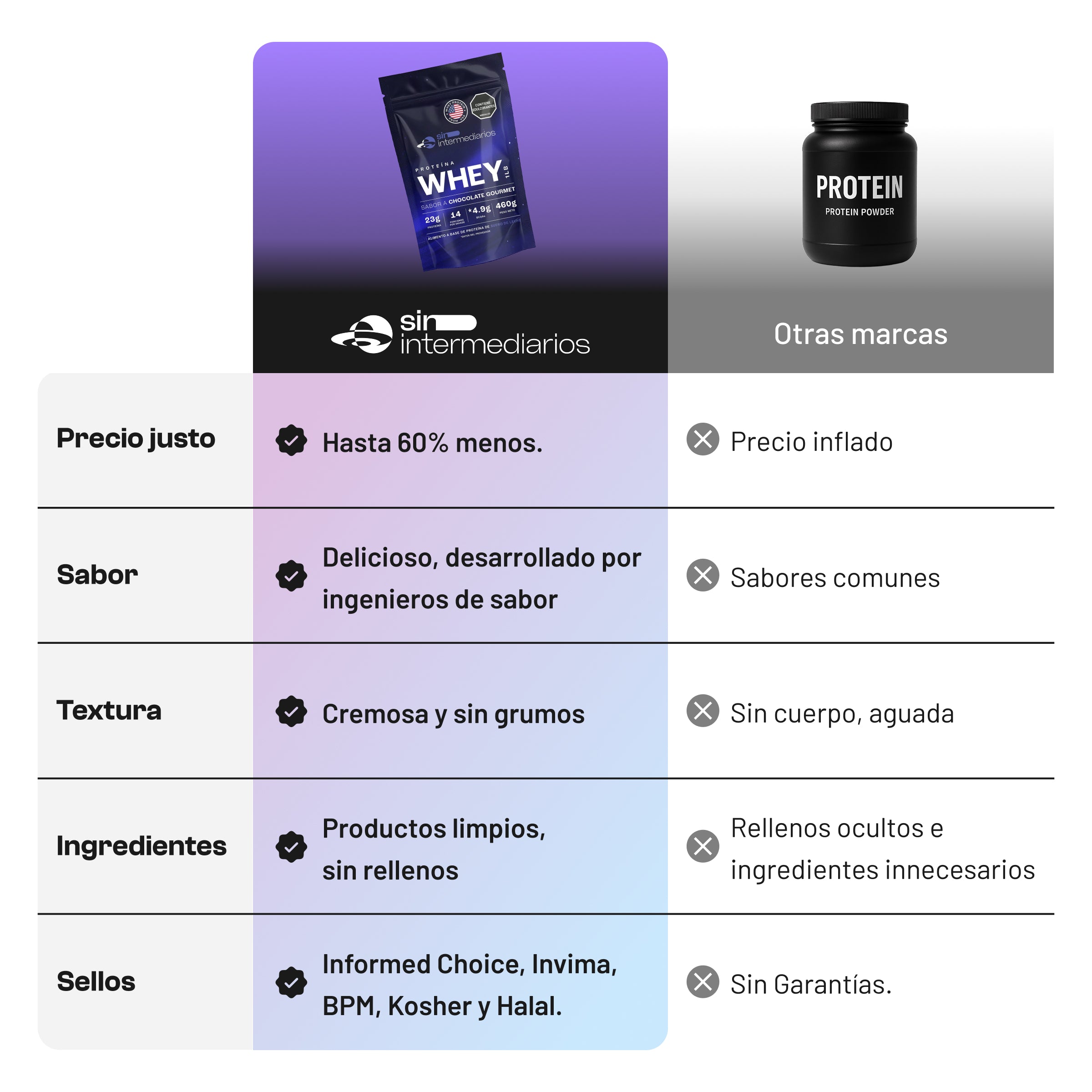 Elaborados bajo Buenas Prácticas de Manufactura y con registro sanitario Invima RSA-0026083-2023. Alimento a base de proteína. No es un medicamento y no suple una alimentación equilibrada.